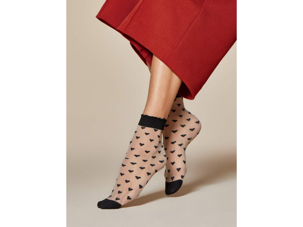 Dámske silonkové ponožky so srdiečkami Fiore Juenet - čierne