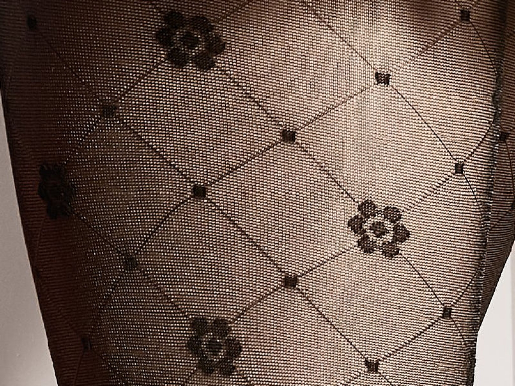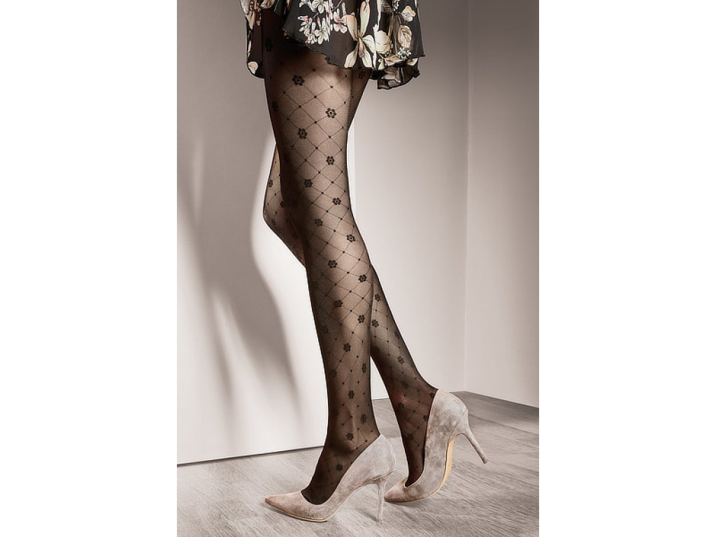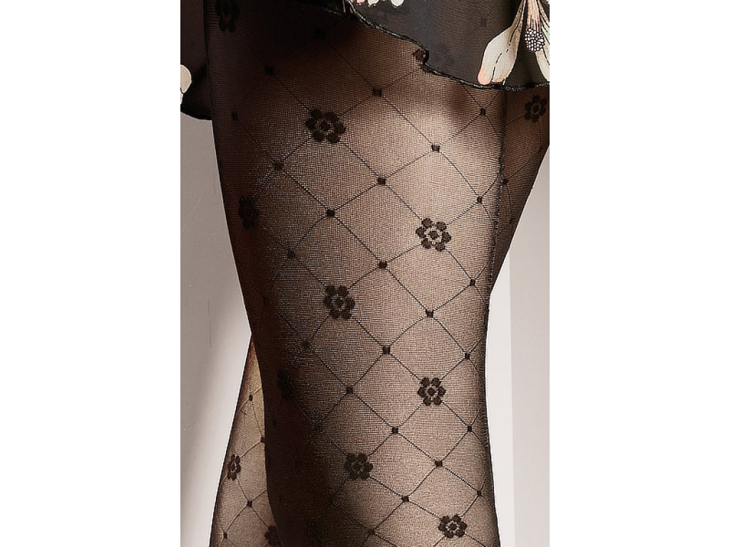 Dámske vzorované pančušky s kvetinovým vzorom, vyrobené z priadze typu elastan opletené polyamidovým hodvábom. Pančušky majú po svojej celej dĺžke, jemný ozdobný vzor s kvetmi. Majú malý klin bez označenej časti nohavičiek a prstov.