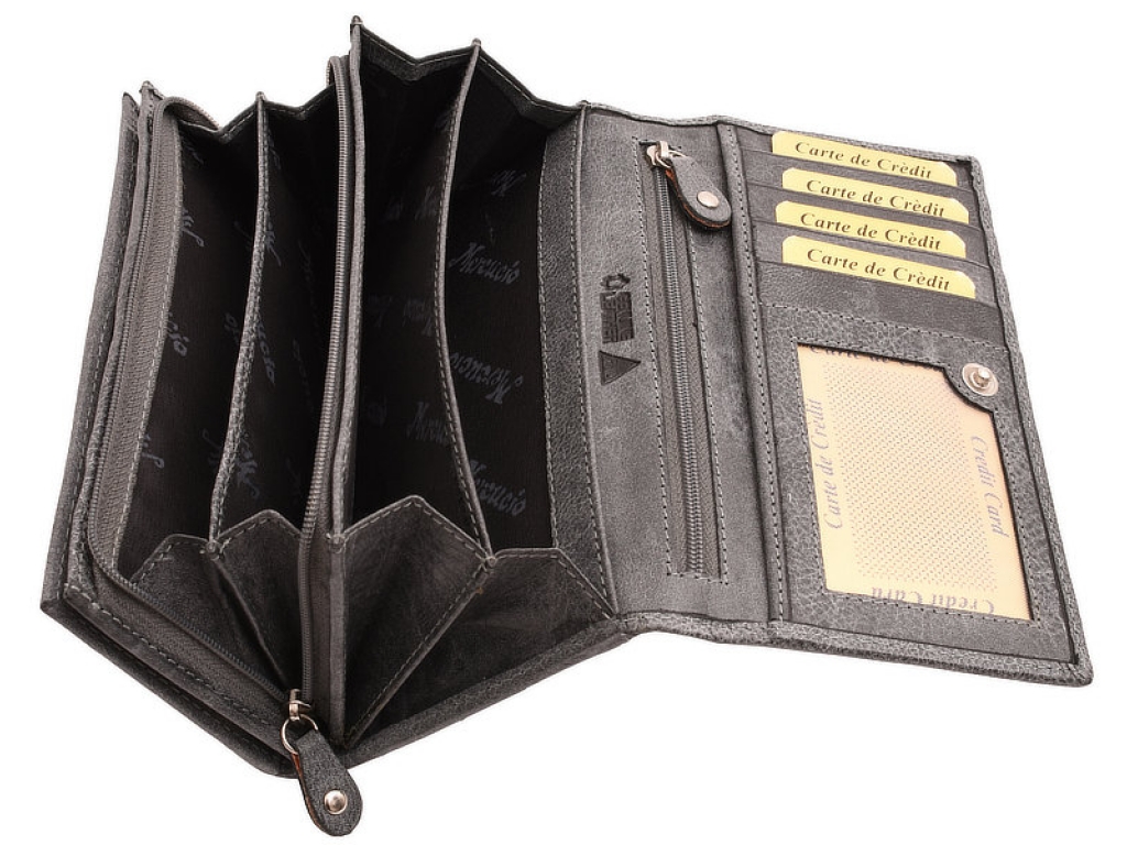 Kožená peňaženka s jemne zdobenou a prešívanou klopou vyrobená z mäkkej teľacej kože s ukladacím priestorom na karty