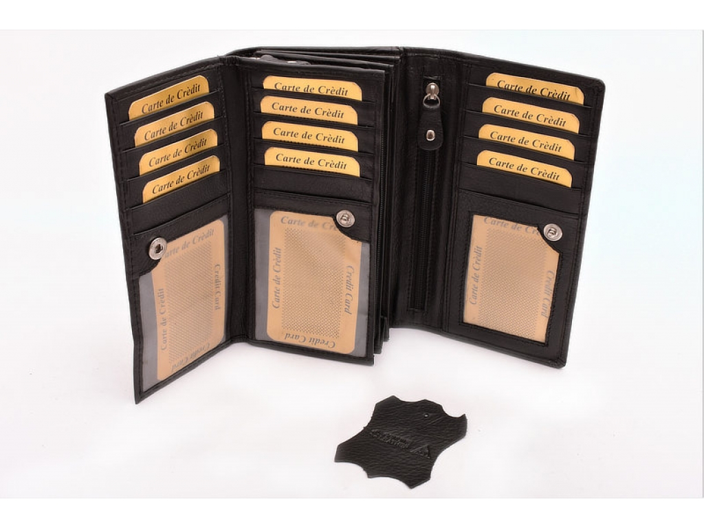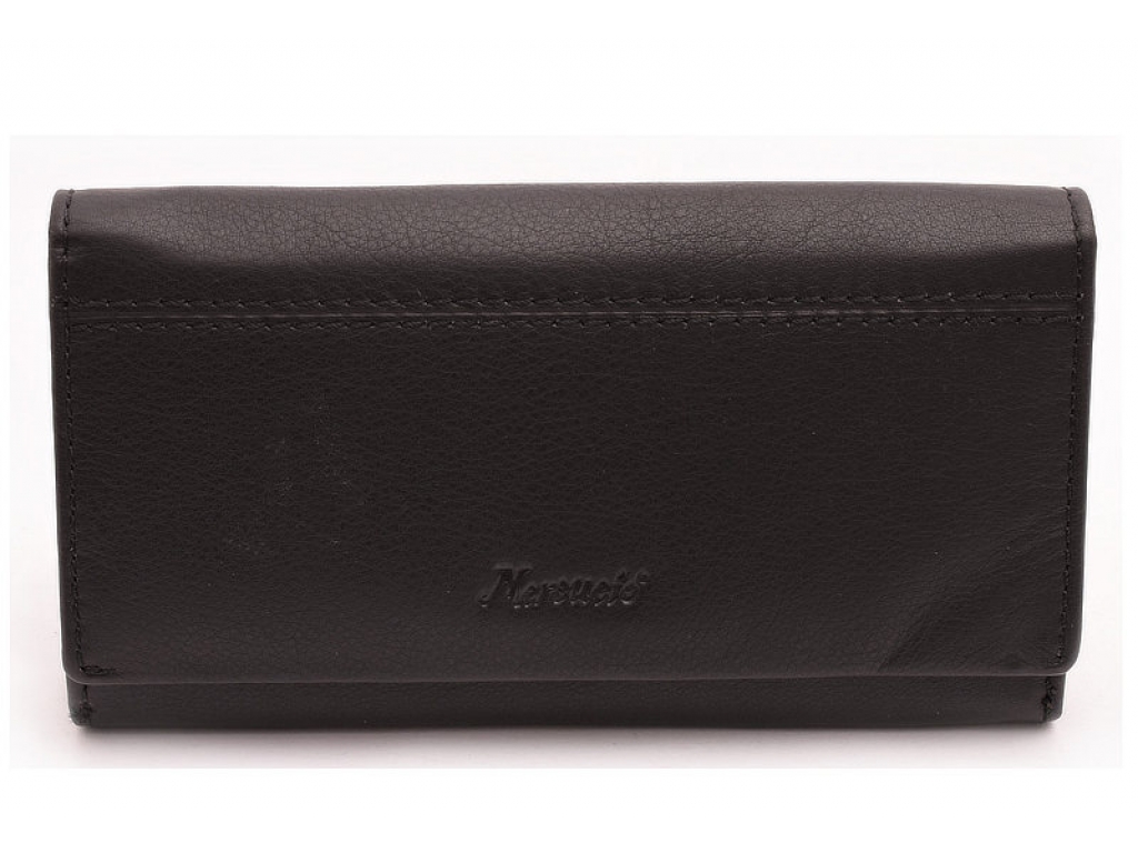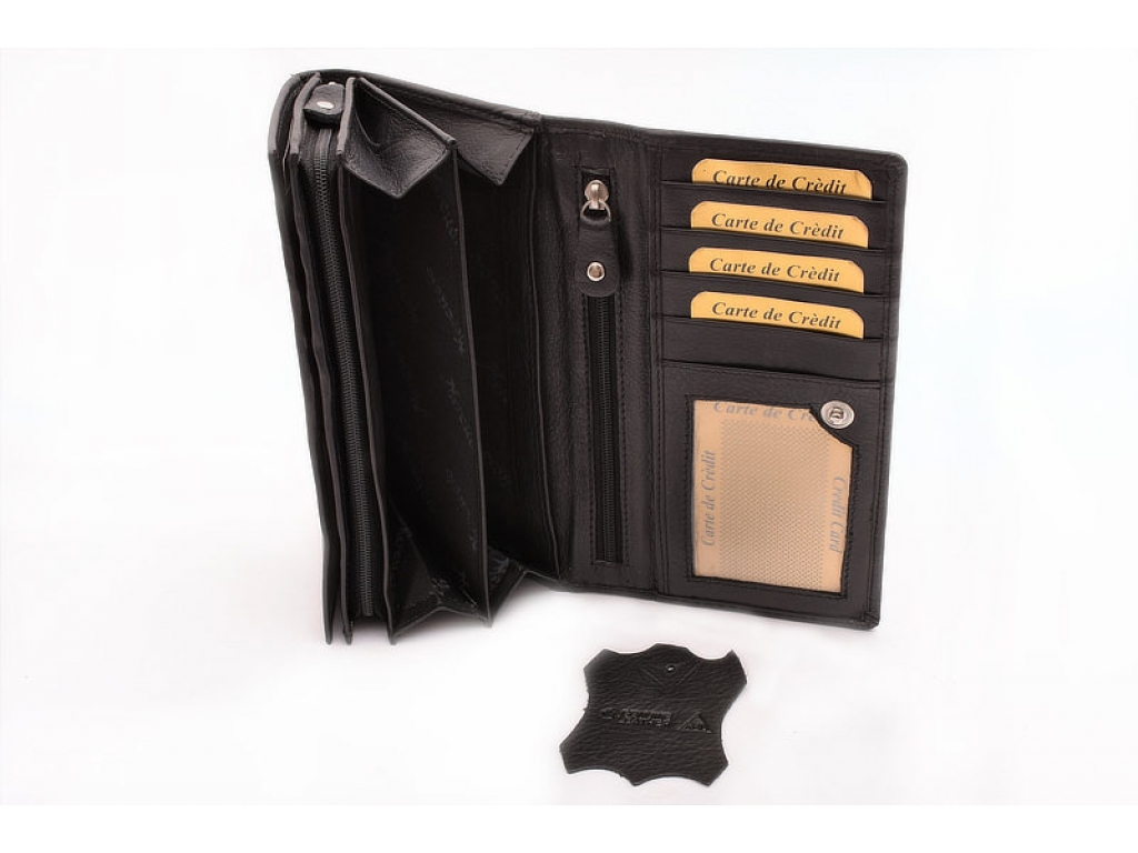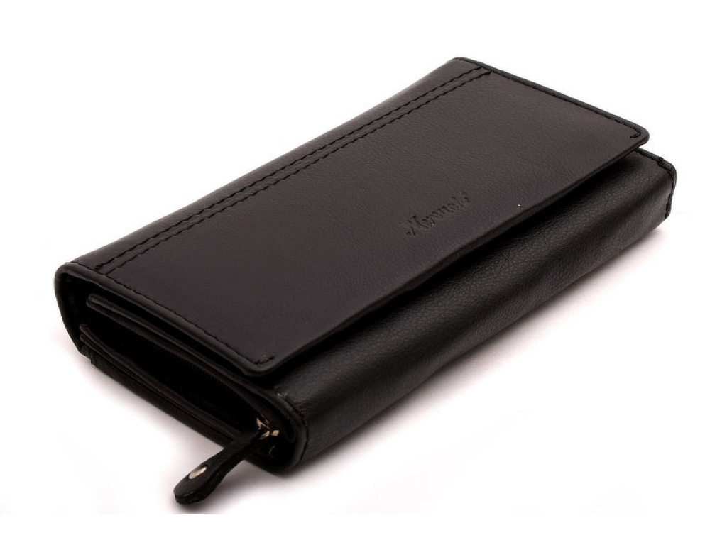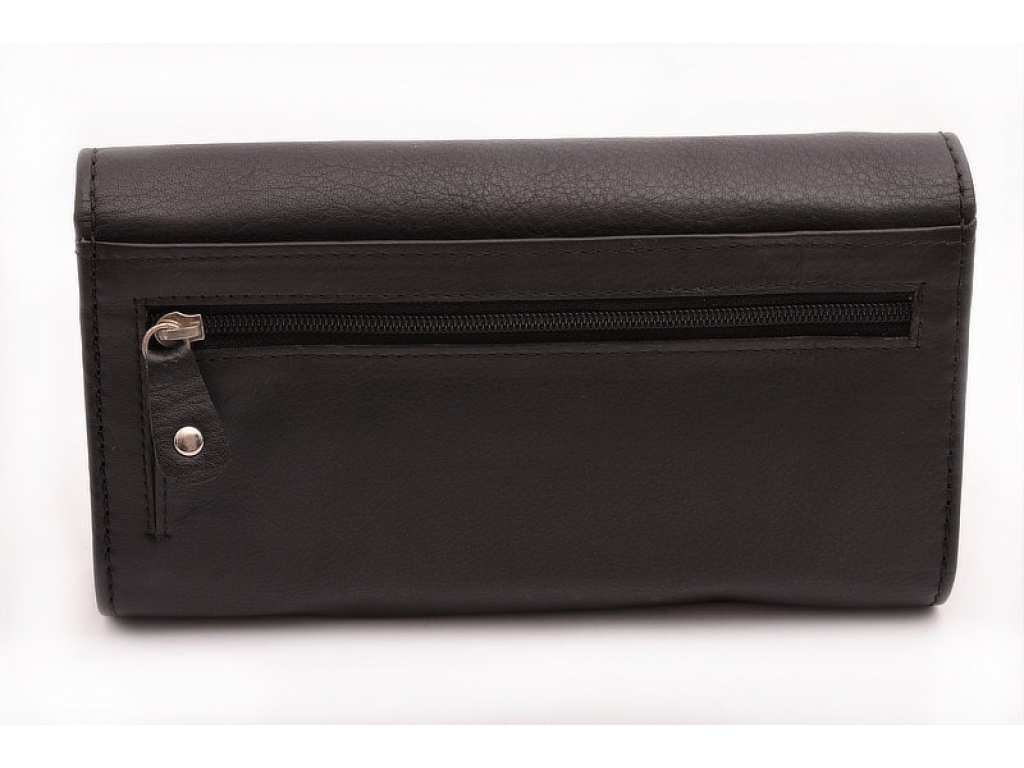 Kožená peňaženka s jemne zdobenou a prešívanou klopou vyrobená z mäkkej teľacej kože s ukladacím priestorom na karty