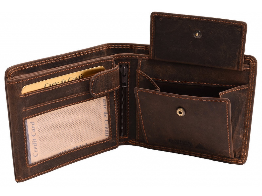 Praktická kožená peňaženka pre pánov s vnútorným zapínaním na patent. Obľúbený model pre každého muža bez rozdielu veku.
