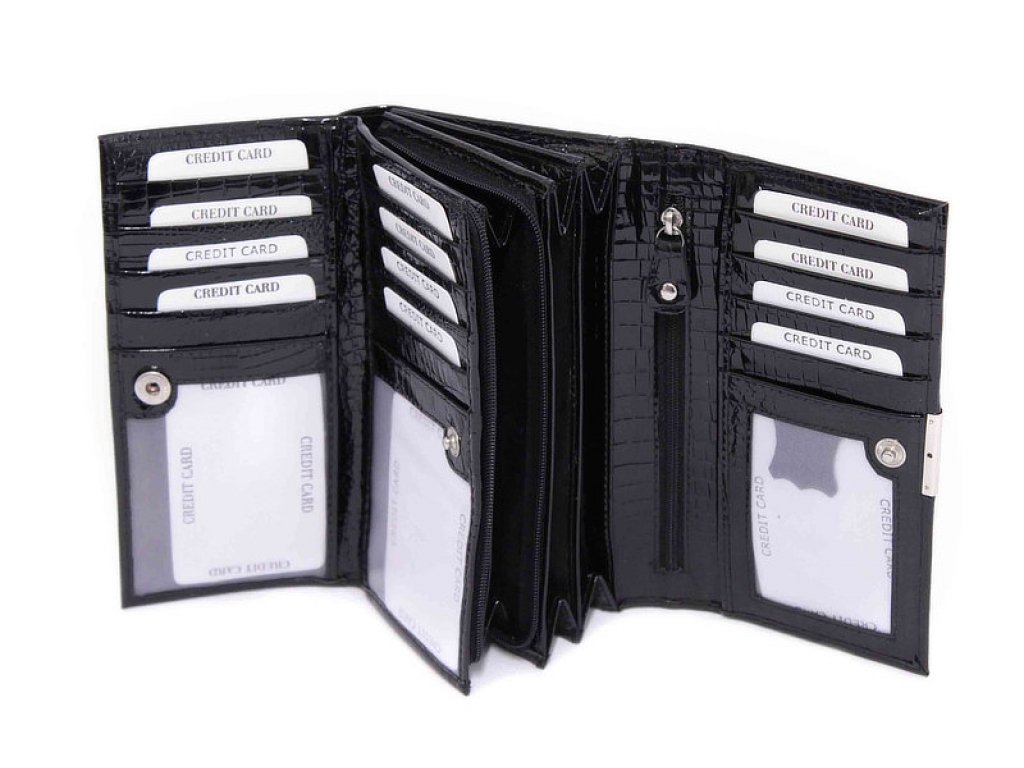 Luxusná kožená peňaženka z teľacej lakovanej kože s ukladacím priestorom na karty.