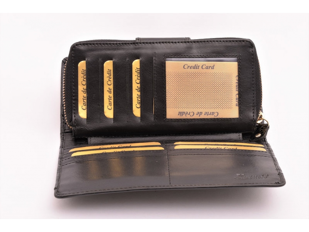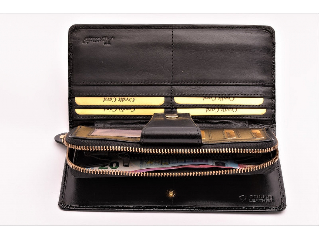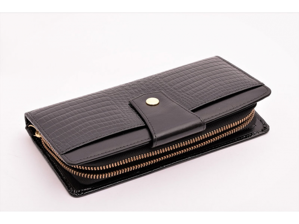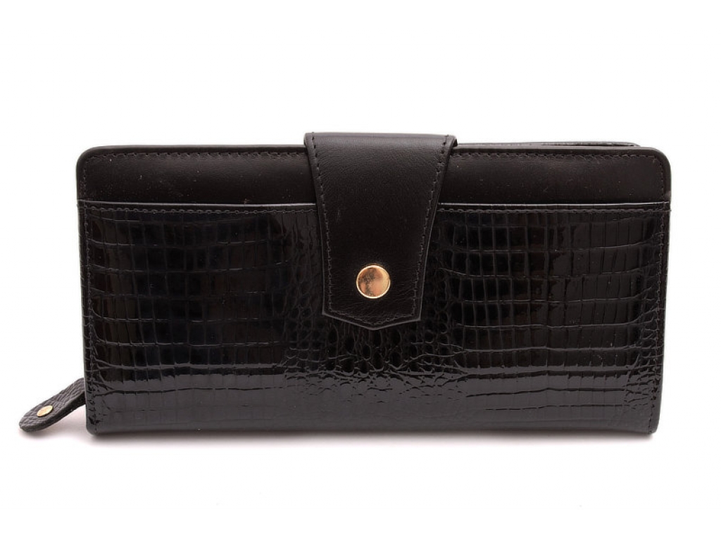 Krásna a elegantná kožená peňaženka v kombinácii hladkej a lakovanej vzorovanej koži v praktickom väčšom prevedení