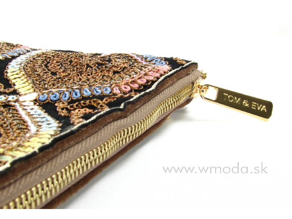 Štýlová zamatová kabelka s vyšívanou aplikáciou a flitrami z dielne francúzskej značky Tom&Eva