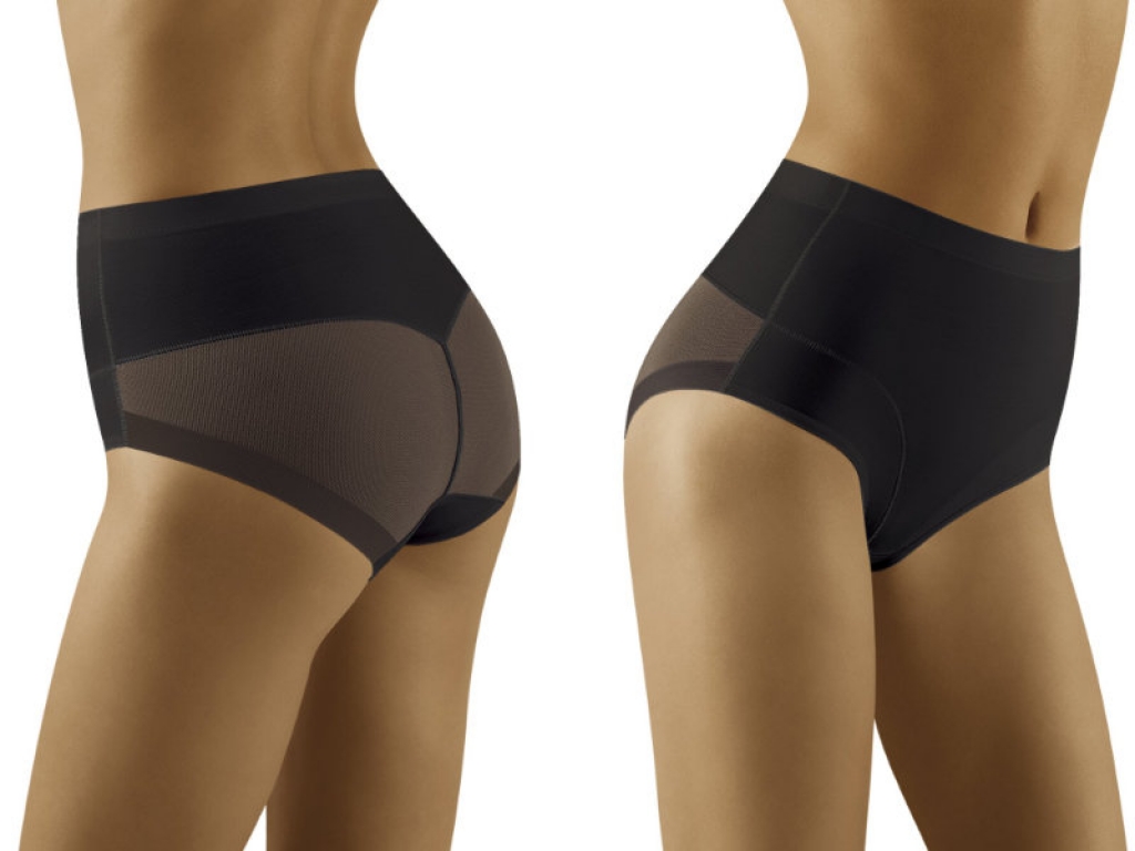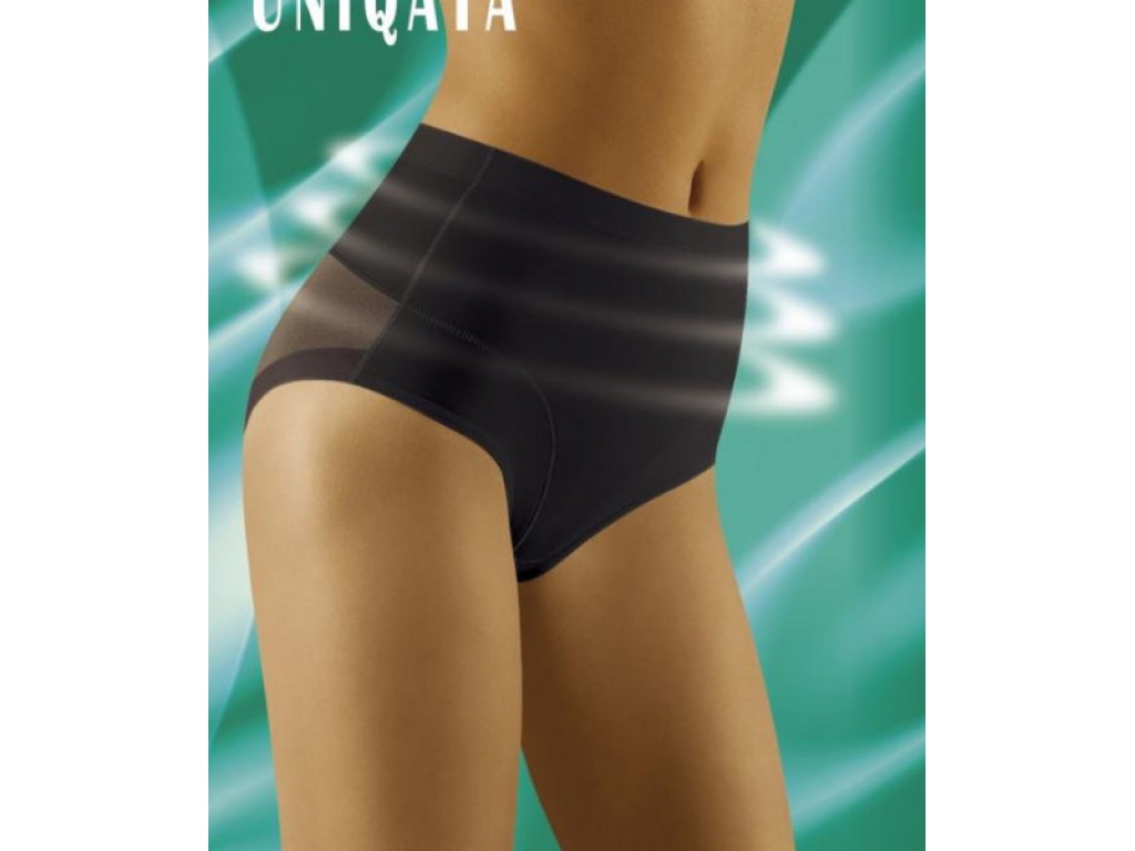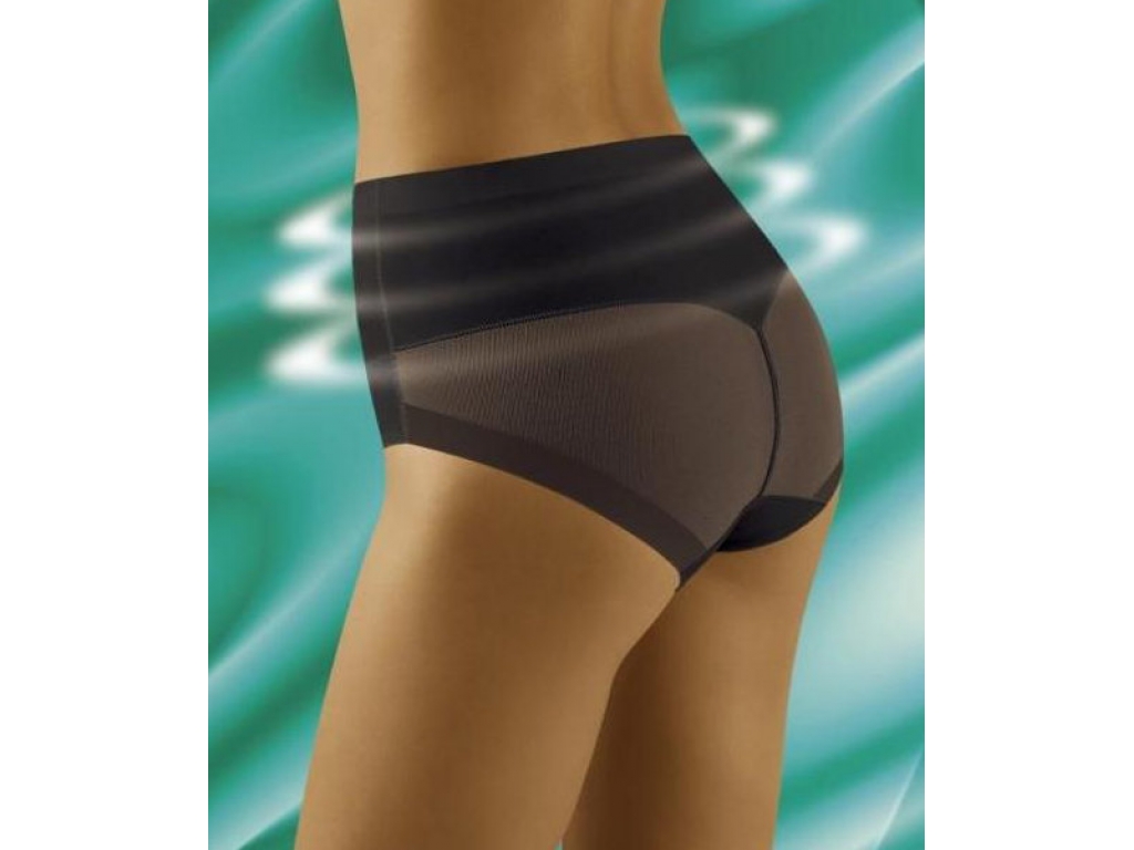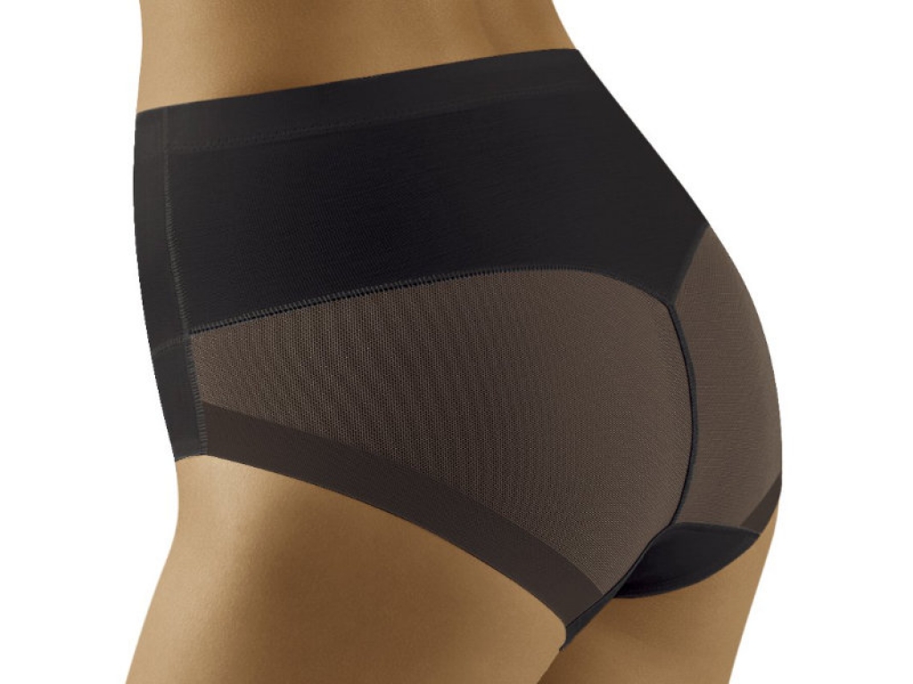 Silne tvarujúce, príjemné a pohodlné ženské nohavičky Wolbar Uniqata Vám vďaka vyššiemu strihu skvelé pomožu zakryť nedostatky v oblasti bruška a podbruška a jemne vyformujú a nadvihnú zadoček. V prednej sú časti vyrobené z neprehľadného hladkého mikrovlákna, zadná časť je v oblasti pásu vyrobená z mikrovlákna a v časti zadočku zo sexi dvojitého tylu.